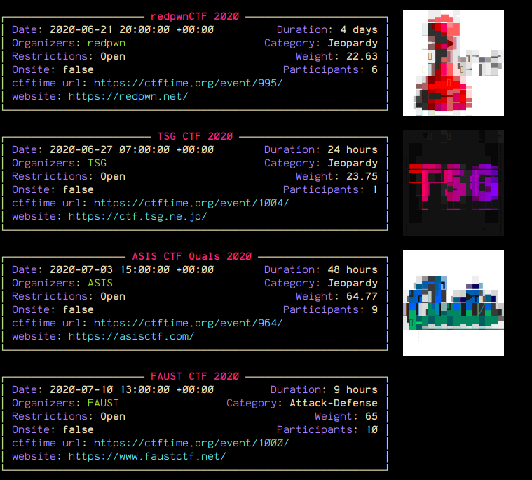 Get a list of upcoming CTFs directly from your command line